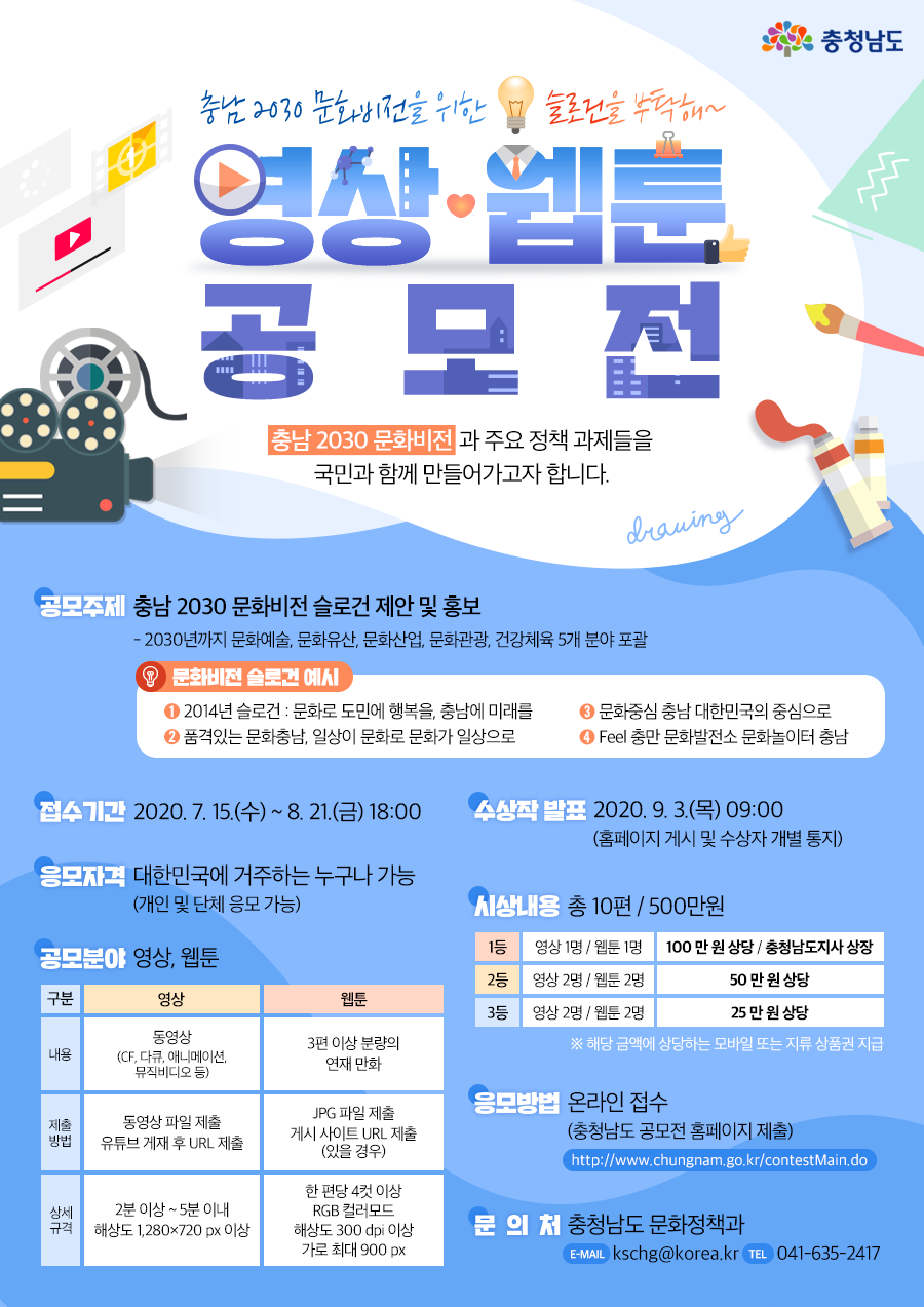 - 충남 2030 문화비전 수립 영상/웹툰 공모전 안내